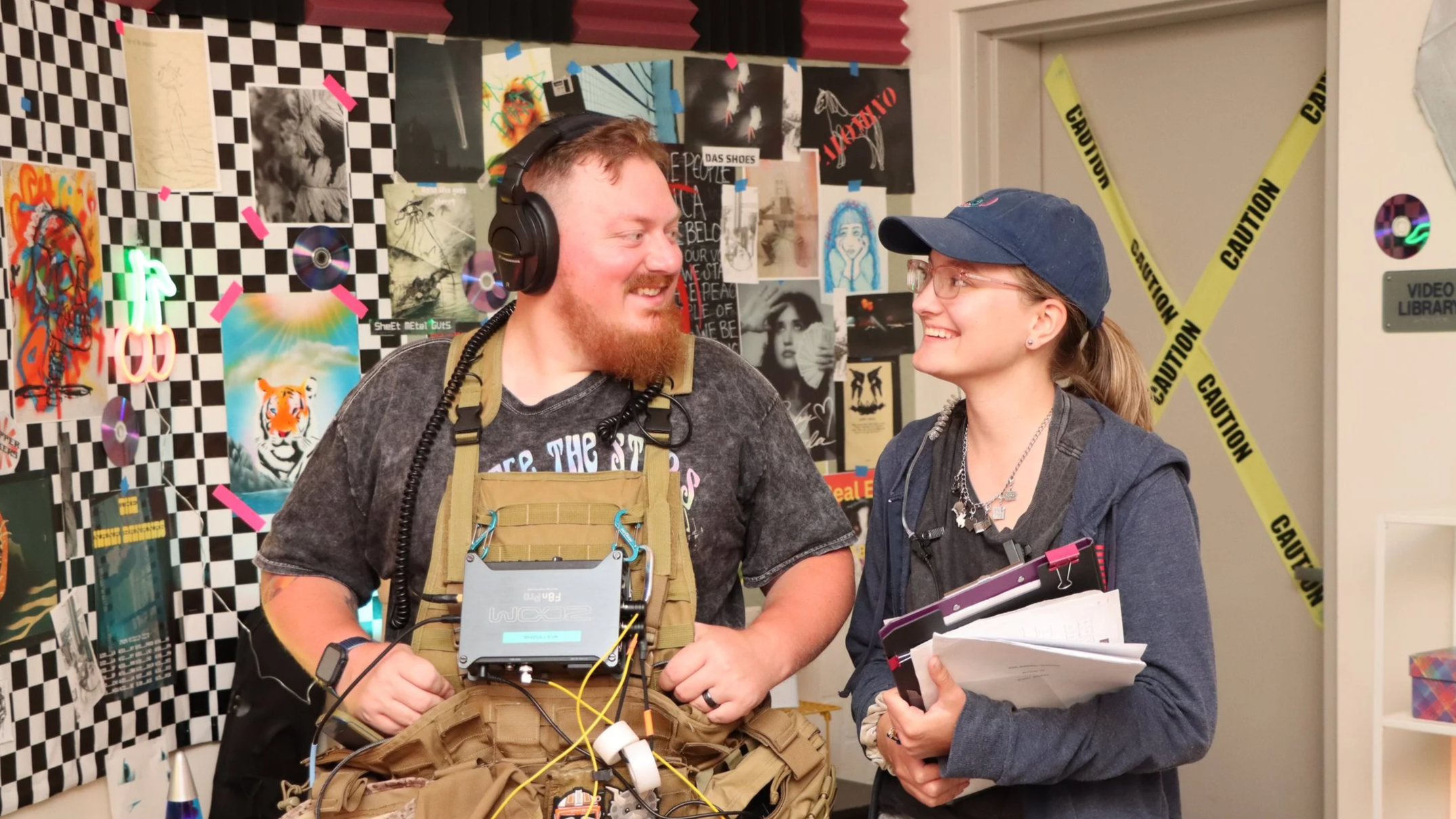 Steven Turk and Jenna Sackett, founders of Phoenix Quest Productions on a film set.